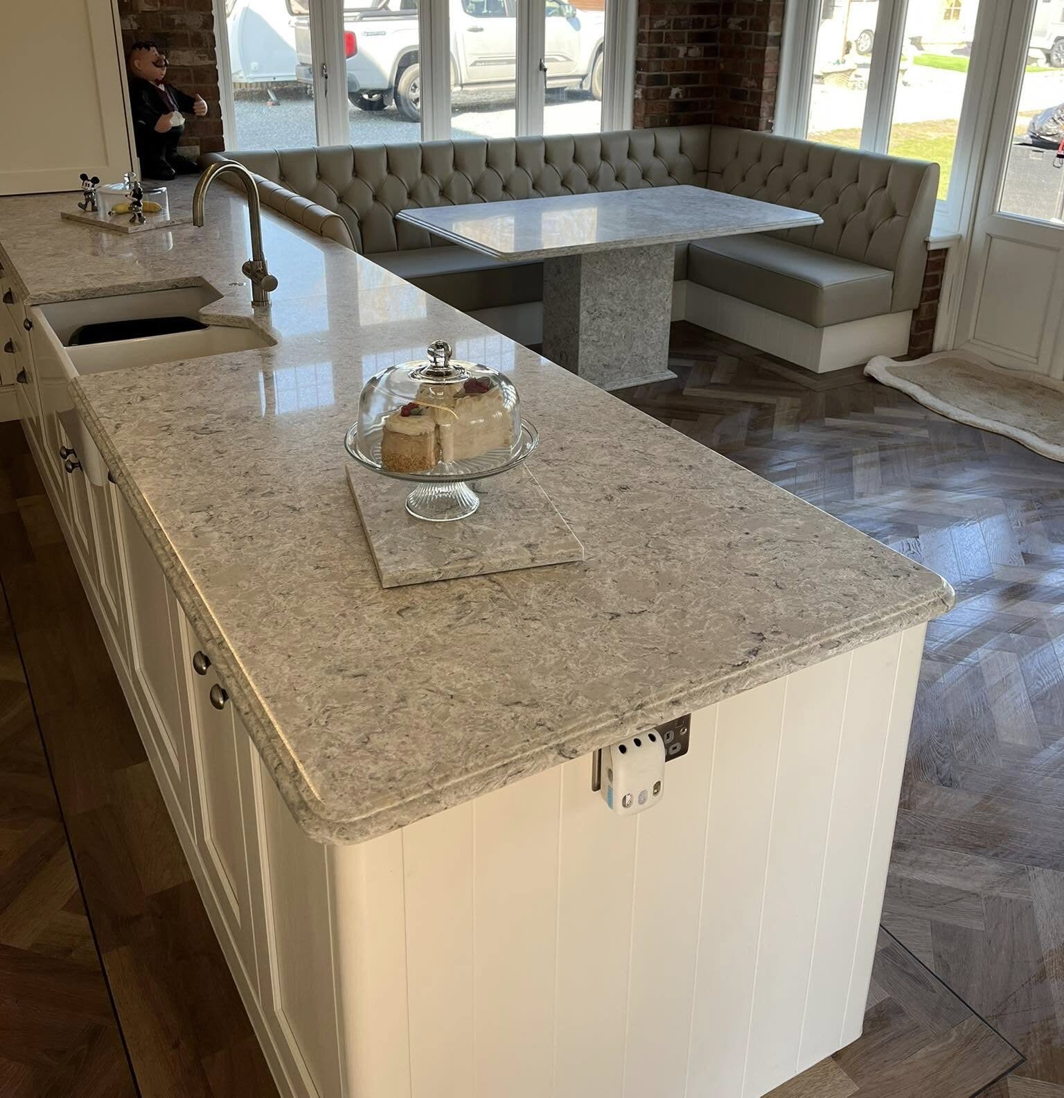 We love creating dramatic finishes with shaped edges that add individuality to your kitchen, as well as book matching where possible to give a seamless look.